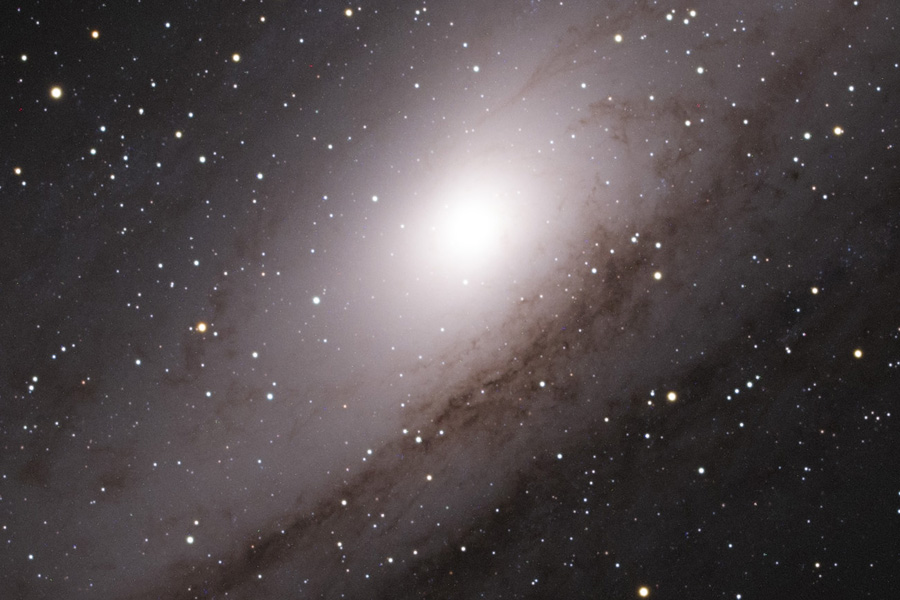 In the example above we can see that Nikon's NX-D Astro Noise Reduction has done a terrific job of removing hot pixels and color blotches caused by thermal current without blurring any detail or removing any real stars. Vignetting