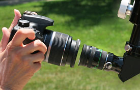 With many afocal setups for photography, you may experience vignetting. This will make the image seem like it is being viewed through a tunnel. It is caused by the light cone that reaches the sensor not being fully illuminated. To reduce vignetting, use an eyepiece with a large lens that is not recessed. Use an eyepiece with large eye relief, such as a Plössl . Try moving the camera lens closer to the eyepiece. If you are using a DSLR with a lens that has a lens shade on it, take it off. If you are using a digital snapshot camera, try zooming it in. If you can't remove the vignetting and you find it objectionable in the image, you can always crop it out later when you process or print the image.