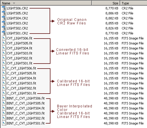 Calibrated, Converted and Bayer Interpolated Files.