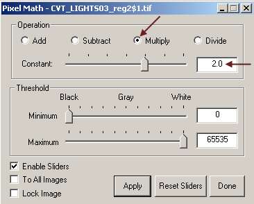 Video If you have shot all of your sub images at the same ISO and exposure time, you can skip this entire page and go directly to the next section. If you have Images Plus v3.75, you can do this automatically by checking the Normalize box under the Process Tab in the section at the bottom called Perform After Calibration and Color Conversion. Normalizing - Stacking Images Shot at the Same Exposure but Different ISOs If images are to be stacked that are shot at different ISO settings, they must first be "normalized" before being stacked. This process modifies the images so each will contribute equally to the final image. Say we have a 5 minute exposure at ISO 800 and a 5 minute exposure at ISO 1600. Even though the same amount of photons were collected in the same amount of time, the pixel values in each image will be different because of the ISO gain factor that is applied in the camera (ISO 800 vs ISO 1600). To normalize these two images, the pixel values in the ISO 800 image must be multiplied by 2 to equal the pixel values in the ISO 1600 image. This is done with the "pixel math" function in an astronomical image processing program like Images Plus.