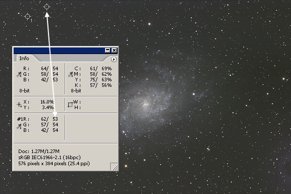 Measure a blank area of darkest sky background with the eyedropper.