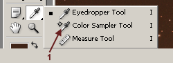 1. Click on the Eyedropper tool and hold the mouse down for a moment, and select the Color Sample Tool from the fly-out menu.