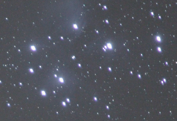 Misshapen stars in the Pleiades are seen in Image 8. Conclusions The disappointing performance of this lens when used wide open is not that surprising. It is a zoom lens after all and contains many elements in many groups, plus it has the image stabilization element. Stopping it down improves the performance, but stars never look like they do in an apochromatic refractor. This is not unexpected as an apochromatic refractor is designed to do one thing well, image stars at infinity. A zoom lens is designed to provide a wide field at different focal lengths and at different subject distances. It is not really fair to expect a zoom lens to perform as well on the stars as an apochromatic refractor.